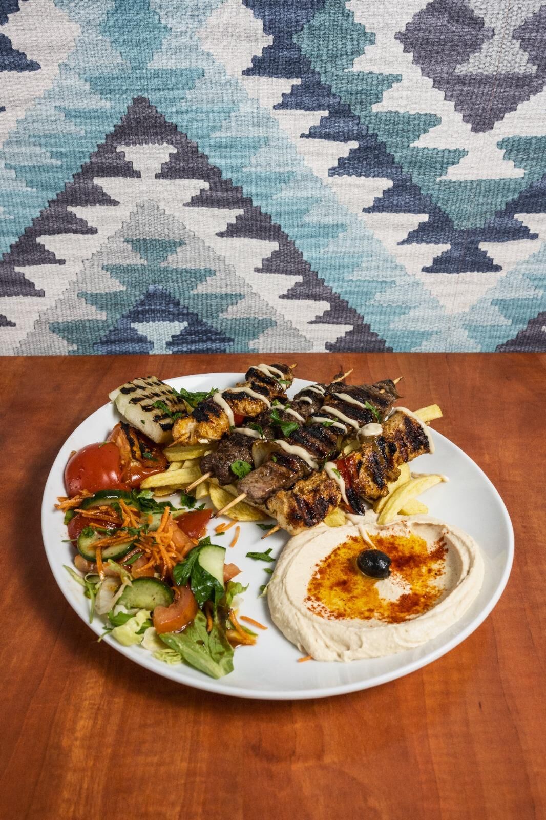 À La Rose de Damas, chaque plat est préparé avec passion et savoir-faire, dans le respect des traditions culinaires syriennes. De nos mezzés variés à nos grillades parfumées, en passant par nos plats mijotés et nos douceurs orientales, tout est fait maison à partir de produits frais. Laissez-vous tenter par un houmous onctueux, des falafels croustillants ou encore un kebbé fondant.